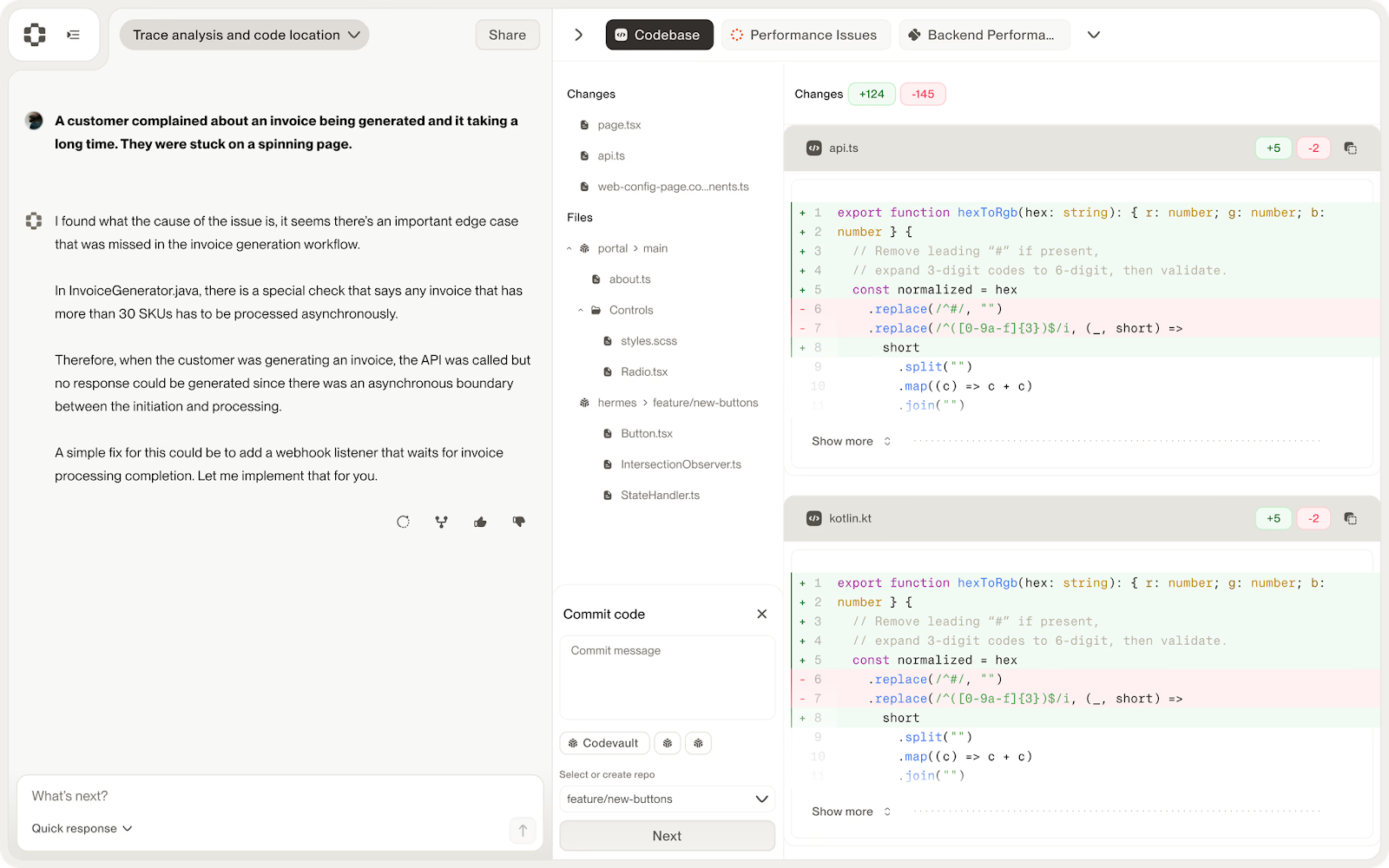 PlayerZero uses turbopuffer to semantically search user codebases, offering a debugging pane where LLMs reason over the code in response to a user debug query. Because turbopuffer provides significantly faster retrieval times with better recall, PlayerZero has reduced time-to-insight by 18x.
